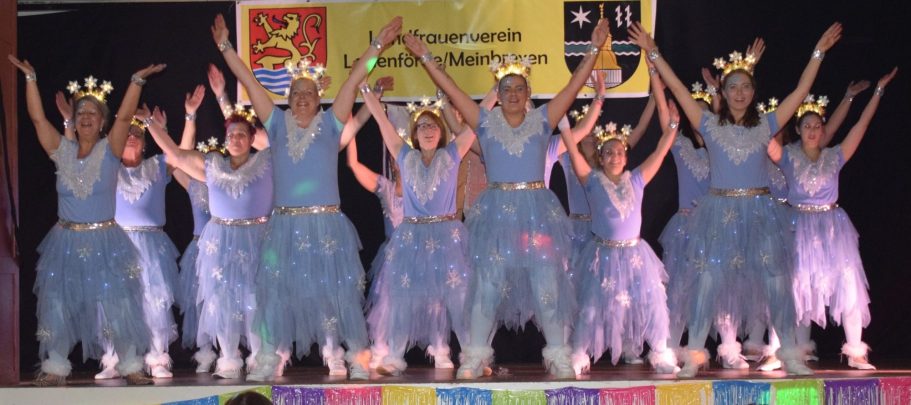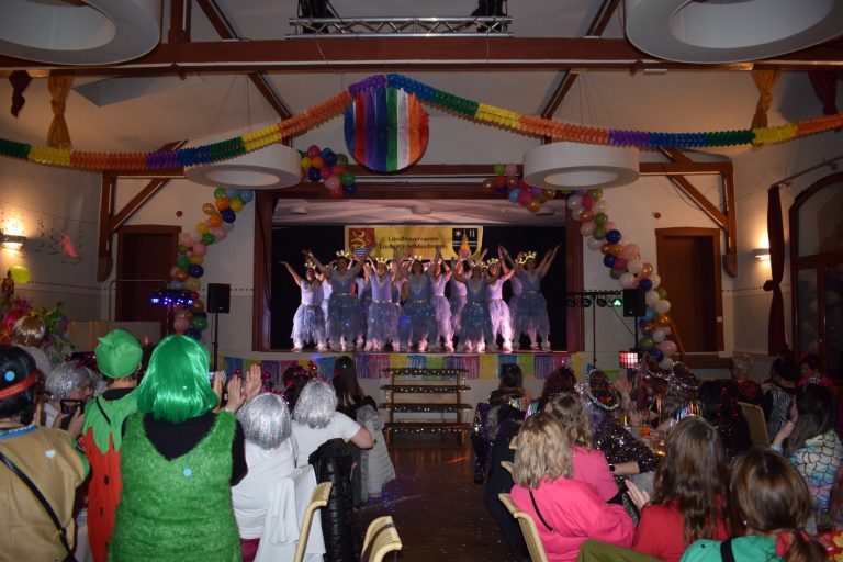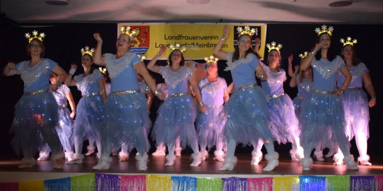 Den krönenden Abschluss der Veranstaltung bildete der Showtanz der 16 Landfrauen in ihren eisblauen, glitzernden und leuchtenden Kostümen. Mit Gesang und ihren mitreißenden Tänzen waren sie das Highlight der Karnevalsfeier. In ihrem 2.Jahr begeisterten die "Tanzhühner" das Publikum mit ihrer ansteckenden Lebensfreude und dem leidenschaftlichen Tanz und ließen die Feier zu einem unvergesslichen Erlebnis für alle Teilnehmer werden. Am Musikpult stand DJ Melanie, sie spielte gute karnevalistische Musik zum Tanzen, Schunkeln und Mitsingen. Unter dem Motto "Let‘s have a Party" feierten und tanzten die fast 150 närrischen Weiber bis in die Nacht hinein.