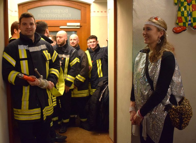 Ein weiteres Highlight war das "Stolpermännerballett" aus Nieheim, das als Feuerwehrmänner auftrat und mit Schwung, Rhythmus und hervorragenden Tanzszenen die närrischen Weiber zu wahren Beifallsstürmen hinriss.